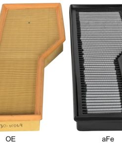 Pro DRY S Media: This filter features 3-layers of progressive media to provide maximum flow with excellent filtration. The progressive layering of media allows the filter to flow at high levels even when dirty. The Pro DRY S non-oiled synthetic air filter requires no oils for cleaning for maximum convenience. Rounded Open Pleats: aFe performance air filters use a rounded, evenly spaced pleat design which produces more usable filter surface area for increased flow and greater dust holding capacity. Progressive Bump Seal: This pliable sealing surface conforms to even the most uneven filter housing. This design eliminates the use of gaskets or sealants. The soft urethane construction always goes back to its original form so you will never compress the bump seal. This makes for a perfect filter fit and sealing surface every time. Full Urethane Housing: aFe Power performance air filters are constructed using full 360 degree urethane frames. This construction allows for a proper factory style fit with excellent filter strength. aFe Power factory replacement performance filters have a limited lifetime warranty.