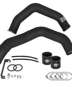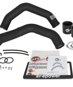 Perfect Fit: Includes stainless steel clamps for a leak-free seal and heavy-duty 5-Ply reinforced silicone coupling for strength. Mandrel-bent Tubing: Constructed of 2-1/4″ mandrel-bent aluminum tubing for maximum flow then, powder-coated for a nice finish. The high-temp powder-coating also insulates the tubes from engine heat and protects the tubes from corrosion. The smooth transition bends decrease turbulence, minimize pressure loss, while increasing horsepower and torque. These tubes are also equipped with a billet aluminum factory style adapter that seals with an o-ring. One 1/8″ NPT port which is provided on each tube for a sensor or water-methanol injection. aFe Badging: Unique aluminum laser-cut aFe Power logo plate is welded-on for an aggressive style.