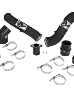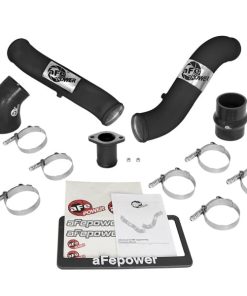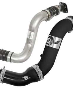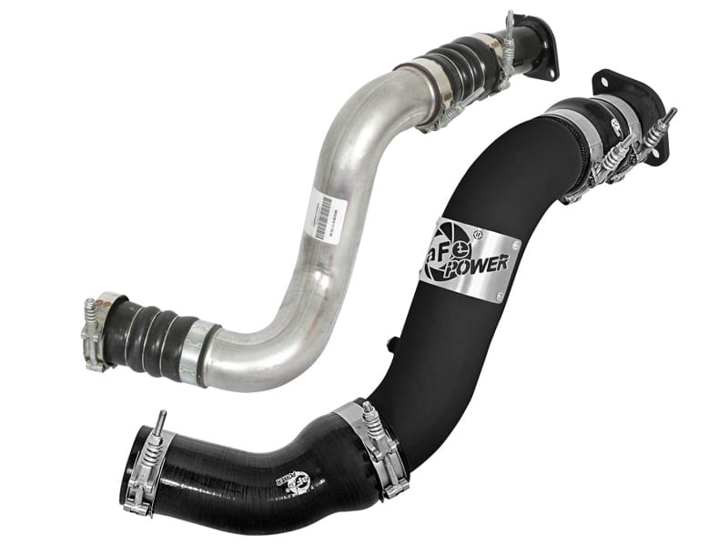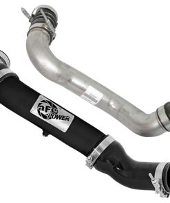 Flow and Performance: Constructed of mandrel bent, powder-coated aluminum tubing for maximum flow. The smooth transition bends decrease turbulence and minimize pressure loss, increasing horsepower, torque and lowering EGT’s. Perfect Fit: Utilizes the factory mounting locations to provide stability for a hassle-free installation. Includes high quality stainless steel spring loaded t-bolt clamps and heavy-duty 5-Ply couplings for strength. Fits OEM or aFe’s upgraded intercooler (46-20281). aFe Badging: A unique laser-cut aFe power logo plate is welded-on for an aggressive style.
