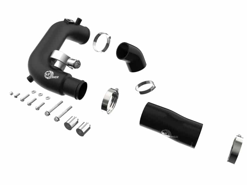 Smooth transitions in the mandrel-bent aluminum tubing decrease turbulence and minimize pressure loss, increasing horsepower and torque. This tube kit includes high-quality, stainless-steel, SmartSeal clamps and heavy-duty, 5-ply, polyester reinforced silicone couplings for superior strength and durability. Finished in Wrinkle Black powder coating with a unique laser-etched aFe POWER logo for a custom look.