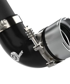 Smooth transitions in the mandrel-bent aluminum pipe decrease turbulence and minimize pressure loss, increasing horsepower and torque. This kit includes high-quality, stainless-steel, spring-loaded T-bolt clamps and heavy-duty, 5-ply, polyester reinforced silicone couplings. This charge pipe kit features factory style billet aluminum quick-connect adapter with an O-ring to ensure a leak-free fit while maintaining superior strength and durability. Finished in wrinkle black powder coating with a unique laser-etched aFe power logo for a custom look.