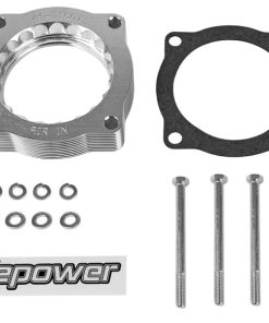 Silver Bullet throttle body spacers create turbulence in the air flow at the point just prior entry into the engine increasing horsepower, torque and improving throttle response and fuel efficiency. Silver Bullet throttle body spacers are constructed out of durable T-6061 billet aluminum and using a unique serrated/helix entry to create turbulence at the manifold while eliminating the annoying whistle found in other helix only throttle spacers.