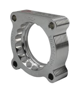 The serrated/helix design creates air turbulence in the intake manifold. This turbulence increases the air pressure in the combustion chamber, resulting in increased performance and improved throttle response. The serrated/helix combination design also reduces intake whistle that occurs with helix-only designs (US PAT 07055513). This Silver Bullet throttle body spacer is precision machined from 6061-T6 billet aluminum for lightweight, high strength, and perfect fit and finish. Its black anodized finish gives a stealthy look. Adding a Silver Bullet Throttle Body spacer lengthens the intake track which helps increase intake air speed, performance and improve throttle response. This Silver Bullet throttle body spacer uses all factory mounting locations, making for a hassle-free installation. A supplied gasket provides a perfect seal.