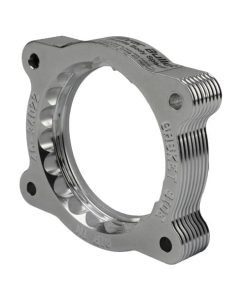 The serrated/helix design creates air turbulence in the intake manifold. This turbulence increases the air pressure in the combustion chamber, resulting in increased performance and improved throttle response. The serrated/helix combination design also reduces intake whistle that occurs with helix-only designs (US PAT 07055513). This Silver Bullet throttle body spacer is precision machined from 6061-T6 billet aluminum for lightweight, high strength, and perfect fit and finish. Its black anodized finish gives a stealthy look. Adding a Silver Bullet Throttle Body spacer lengthens the intake track which helps increase intake air speed, performance and improve throttle response. This Silver Bullet throttle body spacer uses all factory mounting locations, making for a hassle-free installation. A supplied gasket provides a perfect seal.