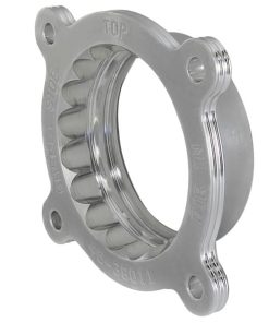 Silver Bullet throttle body spacers create turbulence in the air flow at the point just prior entry into the engine increasing horsepower, torque and improving throttle response and fuel efficiency. Silver Bullet throttle body spacers are constructed out of durable T-6061 billet aluminum and using a unique serrated/helix entry to create turbulence at the manifold while eliminating the annoying whistle found in other helix only throttle spacers.