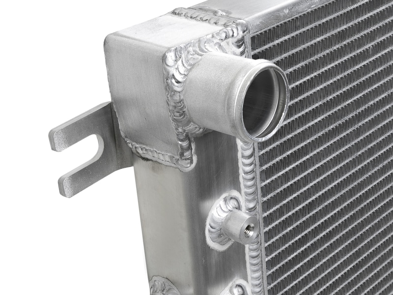 BladeRunner Street Series Radiators feature a thicker tube and fin core, which provides greater heat dissipation and better coolant flow than the factory radiator for optimum cooling efficiency. With aircraft-grade aluminum construction and a larger core, BladeRunner Street Series Radiators offer increased coolant capacity over stock to help maintain cooler operating temperatures longer. The fabricated end tanks are constructed out of 1/8in aluminum plates for strength and durability. 100% TIG-welded for race proven strength and durability. BladeRunner Street Series Radiators include a brass drain valve with barbed fitting to easily connect a hose for draining coolant. Utilizes the factory mounting locations to provide stability for a hassle-free installation. Brushed aluminum finish with an aFe POWER logo painted on the front. aFe BladeRunner silicone radiator hose kits are available separately (2007-11 Jeep JK: 46-50004-B, 2012-18 Jeep JK: 46-50014-B).