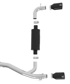Power, sound and good looks is what this Takeda axle-back exhaust delivers. Power gains of up to +7 horsepower and +10 lbs. x ft. torque as shown on our in-house dyno. 3″- 2-1/2″ mandrel bent 304 stainless steel tubing and high flow transverse muffler offers maximum exhaust flow and incorporates a factory style exhaust valve to control the exhaust note. The valve utilizes the factory valve motor and factory performance modes. When closed, it directs the exhaust through the high flow muffler for a smooth, tuned exhaust note. When opened, the exhaust is allowed to bypass the muffler and unleash the sound and performance of your RS. The high flow, stainless steel muffler is finished in high temp, metallic black powder coating for long lasting good looks. Dual 4 1/2″ stainless steel exhaust tips with laser etched Takeda brand logo for a custom finish.