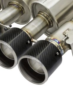 Testing In testing, the axle-back exhaust system resulted in gains up to +7 horsepower and +10 lbs. x ft. of torque verified by our in-house dyno. Aggressive Sound: Dual free-flowing mufflers are used to absorb high pitch tones producing a powerful sound and unleashing all available horsepower and torque. Exhaust Valve: This axle-back exhaust system incorporates factory style NPP dual mode & AFM (active flow management) exhaust valves which use the factory exhaust valve motors (not included). The valves helps regulate, direct and control the flow of exhaust gases by opening, closing, or partially obstructing passageways depending on throttle position for maximum performance. Simple Installation: This MACH Force-Xp axle-back exhaust system uses factory mounting locations providing stability and a hassle-free installation. Quad 4″ Carbon Fiber Tips: Finishing off this system are quad light weight, 4″ diameter, pure carbon fiber tips. The tips come with CNC-Machined laser-etched inserts, which give an aggressive yet elegant sporty look. Leak-Free Seal: High quality band clamps are used for a complete 360 degree sealing surface. Brushed 304 SS Construction: The performance axle-back exhaust system is constructed of 3″ mandrel-bent, brushed 304 stainless steel tubing for maximum performance, corrosion resistance and strength eliminating cracking.