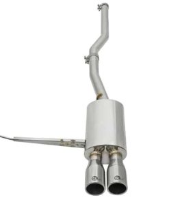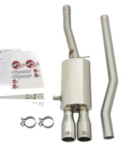 Testing: Up to 31% increase in Flow. 14″ Muffler: This system incorporates a large 14″ stainless steel muffler which produces a mellow sound while virtually eliminating exhaust drone. Flow and Performance: This MACH Force-Xp cat-back exhaust system is constructed of 2-1/2″ mandrel bent 304 stainless steel tubing for maximum flow. Smooth transition bends allow for low turbulence, increasing horsepower and torque. Retains Rear Catalytic Converter: The rear cat is retained on this system to maintain a smooth deep sound but more importantly to keep the system street legal. Dual 3-1/2″ Polished Center Exit Tips: Finishing off the exhaust are dual 3-1/2″ polished stainless steel tips with laser-etched aFe power logos for an aggressive style.