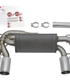 Aggressive Sound: A free-flowing, transverse muffler is used to absorb high pitch tones producing a powerful sound and unleashing all available horsepower and torque. The muffler is finished with a high-temp powder-coated black finish and a stamped aFe power logo. Exhaust Valve: This down-pipe back exhaust system incorporates a factory style exhaust valve which uses the factory exhaust valve motor (not included). The valve helps regulate, direct and control the flow of exhaust gases by opening, closing, or partially obstructing passageways depending on throttle position for maximum performance. Simple Installation: This MACH Force-Xp axle-back exhaust system uses factory mounting locations providing stability and a hassle-free installation. Quad 4″ Polished Tips Finishing off this system are quad 4″ diameter, polished, 304 stainless steel tips. The tips come with a laser-etched aFe power logo for an aggressive style. Leak-Free Seal: High quality band clamps are used for a complete 360 degree sealing surface. Brushed 304 SS Construction: The performance axle-back exhaust system is constructed of 3″ to 2-1/2″ mandrel-bent, brushed 304 stainless steel tubing for maximum performance, corrosion resistance and strength eliminating cracking. All aFe exhaust systems are engineered and manufactured in our Corona, California manufacturing facility.