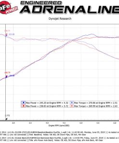 This system produced gains of up to +18 HP and +27 lbs. x Ft. TQ., as measured on our in-house dyno. This cat-back exhaust system is constructed of 3″ – 2-1/2″ mandrel-bent 304 stainless steel tubing for maximum strength and durability. This system features a high-flow stainless steel muffler, producing a aggressive sound. Muffler finish may vary. Finishing off this exhaust system are dual 4″ diameter polished 304 stainless steel clamp-on exhaust tips. The tips features a laser etched aFe POWER logo for a unique style. Utilizing a factory style flange and hangers this system is a direct bolt-on system, which requires no cutting or modifications for a hassle-free installation. This cat-back exhaust system incorporates a factory style exhaust valve which uses the factory exhaust valve motors (not included). The valve helps regulate, direct and control the flow of exhaust gases by opening, closing, or partially obstructing passageways depending on throttle position for maximum performance. A mitered merge collector is used to decrease turbulence and increase exhaust velocity resulting in increased horsepower, torque and improved throttle response.Utilizing state-of-the-art computer-aided design technology, this exhaust system is designed for custom, high tolerance factory fitment. 100% MIG-Welded for race-proven strength and durability.