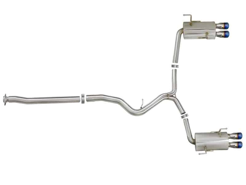 This Takeda dual cat-back exhaust system for the 2015 – 2017 Subaru WRX and WRX STI delivers true bolt-on performance with gains up to +14 horsepower and +22 lbs. x ft. of torque as measured on our in-house dyno. 3″ into 2-1/4″ mandrel-bent 304 stainless steel tubing, mitered merge and dual, stainless steel high flow mufflers evenly distribute exhaust gases to improve performance across the power band while maintaining an aggressive sound. Quad, 304 stainless steel, blue flame 3-1/2″ diameter tips with laser-etched Takeda logos complete the look. Performance Gains: In house dyno testing produced gains of up to +14 horsepower and +22 lbs. x ft. torque.304 Stainless Steel Construction: 3″ – 2-1/4″ mandrel-bent, 304 stainless steel tubing for maximum performance, corrosion resistance, strength, and durability. Quad 3-1/2″ Blue Flame Stainless Steel Exhaust Tips: Quad 3-1/2″ diameter blue flame finished stainless steel exhaust tips. The tips come with a laser-etched Takeda logo for a custom look. Flow and Performance: Dual high flow 304 stainless steel mufflers are used to absorb high pitch tones producing a powerful sound. Mitered Merge: A true mitered merge is used to maximize scavenging and evenly distribute exhaust gases thru the muffler reducing un-wanted back pressure. TIG-Welded: 100% TIG-welded for race proven strength and durability. Simple, Hassle Free Installation: This system is designed to be a direct bolt-on system with no cutting or modifications required. Also included is high quality stainless steel hardware for a hassle-free installation.