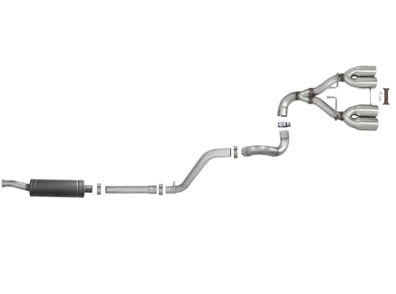 This Rebel Series cat-back exhaust system delivers quality, sound, performance and appearance for your Jeep JL 2 or 4 door model. Made from mandrel bent 409 stainless steel tubing for increased exhaust flow and performance, this dual rear exit system eliminates the primary muffler and uses a high flow, transverse rear muffler, finished in high temp black powder coating so it looks as good as it sounds. Dual 4-1/2″ stainless steel clamp-on tips with aFe POWER logos finish it off for the perfect combination of performance, value and style.