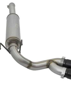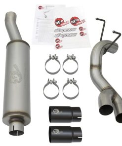 aFe POWER introduces an all new Rebel Series dual middle-side exit exhaust system for the 2014-2017 RAM 2500/3500 with V8-6.4L HEMI engine. This Rebel Series cat-back is designed with dual black exhaust tips that exit in front of the rear passenger tire for a unique, aggressive look. The tips come with unique laser-etched aFe POWER logos on the side and are constructed from 304 stainless steel for durability. The exhaust system is constructed from 3-1/2″ MIG-welded, mandrel bent stainless steel tubing for maximum flow, increased horsepower and torque. This kit uses a free-flowing muffler to absorb high pitch tones producing a powerful sound. The performance cat-back exhaust system includes necessary hardware and clamps for a hassle-free install, with no cutting required making it a true bolt on system. 4″ Dia. Black Middle-Side Exit Tips: Finishing off the exhaust are dual 4″ diameter black 304 stainless steel clamp-on tips with a laser-etched aFe POWER logo on the side for an aggressive style. The tips are designed to exit from in front of the rear passenger side tire for a unique custom look. Installation Is A Snap: This Rebel Series exhaust system uses factory mounting locations providing stability and hassle-free installation. Leak-Free Seal: High quality band clamps are used for a complete 360-degree sealing surface eliminating leak paths. Aggressive Sound: A free-flowing stainless steel muffler is used to absorb high pitch tones producing a powerful sound and unleashing all available horsepower and torque. Perfect Fit: OE-style bayonet hangers are used to maintain a stable pipe location during high vibration and high heat conditions. The bayonet tip holds the hanger bushing in place for an OE-style fit that does not change with time. This makes for an easy installation with no cutting required.