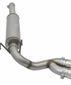 aFe POWER introduces an all new Rebel Series dual middle-side exit exhaust system for the 2014-2017 RAM 2500/3500 with V8-6.4L HEMI engine. This Rebel Series cat-back is designed with dual polished exhaust tips that exit in front of the rear passenger tire for a unique, aggressive look. The tips come with unique laser-etched aFe POWER logos on the side and are constructed from 304 stainless steel for durability. The exhaust system is constructed from 3-1/2″ MIG-welded, mandrel bent 409 stainless steel tubing for maximum flow, increased horsepower and torque. This kit uses a free-flowing muffler to absorb high pitch tones producing a powerful sound. The performance cat-back exhaust system includes necessary hardware and clamps for a hassle-free install, with no cutting required making it a true bolt on system. 4″ Dia. Polished Middle-Side Exit Tips: Finishing off the exhaust are dual 4″ diameter polished 304 stainless steel clamp-on tips with a laser-etched aFe POWER logo on the side for an aggressive style. The tips are designed to exit from in front of the rear passenger side tire for a unique custom look. Installation Is A Snap: This Rebel Series exhaust system uses factory mounting locations providing stability and hassle-free installation. Leak-Free Seal: High quality band clamps are used for a complete 360-degree sealing surface eliminating leak paths. Aggressive Sound: A free-flowing stainless steel muffler is used to absorb high pitch tones producing a powerful sound and unleashing all available horsepower and torque. Perfect Fit: OE-style bayonet hangers are used to maintain a stable pipe location during high vibration and high heat conditions. The bayonet tip holds the hanger bushing in place for an OE-style fit that does not change with time. This makes for an easy installation with no cutting required.