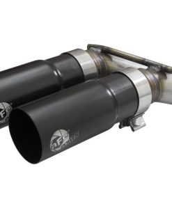 This system produced gains of up to +9 HP and +17 lbs. x Ft. TQ., as measured on our in-house dyno. This cat-back exhaust system is constructed of 3 IN – 2-1/2 IN mandrel-bent 409 stainless steel tubing for maximum strength and durability. This system features a high-flow 409 stainless steel muffler, producing a aggressive sound. Finishing off this exhaust system are dual 3-1/2 IN diameter black 304 stainless steel clamp-on exhaust tips. The tips features a laser etched aFe POWER logo for a unique style. This system produces an aggressive sound unleashing all available horsepower and torque. Utilizing a factory style flange and hangers this system is a direct bolt-on system, which requires no cutting or modifications for a hassle-free installation. Utilizing state-of-the-art computer-aided design technology, this exhaust system is designed for custom, high tolerance factory fitment. 100% MIG-Welded for race-proven strength and durability.