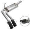 Introducing an all new Rebel Series Dual Center Exit Cat-Back exhaust system for the Jeep Wrangler (JK) with V6-3.6L/3.8L engine. This unique Rebel Series exhaust system is designed with dual center exit tips for an aggressive look. The Tips are 4-1/2″ with aFe power plates and constructed out of stainless steel for durability. This performance cat-back exhaust is constructed of 2-1/2″ MIG-welded mandrel-bent stainless steel tubing. The smooth curves and increased diameter of this exhaust system helps remove restriction and keeps exhaust gas flowing smoothly for increased horsepower, torque and throttle response. In testing, this cat-back exhaust system added an astounding +9 horsepower and +14 lbs. x ft. of torque as verified by our in house dyno. This exhaust system comes complete with a 22″ free-flowing muffler, OE style bayonet hangers, band clamps and all hardware necessary for a hassle-free installation.