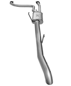 Creates maximum performance and extreme mileage gains. The free flowing rear side exit exhaust system is constructed out of 2.25 in. mandrel bent 409 stainless steel and uses bayonet style hangers and band clamps for a hassle free installation. Fits both the slip-fit and flange-fit cats thats both on the OE cat and universal cats. Uses all factory mounting locations providing stability and a hassle free installation. High quality OE style flange and band clamps are used for a complete 360 deg. sealing surface eliminating leak paths. A straight through designed; free flowing stainless steel muffler is used to absorb high pitch tones producing a powerful sound and unleashing all available horsepower and torque out of your rig. OE style bayonet hangers are used to maintain a stable pipe location during high vibration and high heat conditions. The bayonet tip holds the hanger bushing in place for an OE style fit that does not change with time.