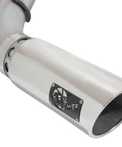 aFe LARGE BORE HD exhaust systems are constructed from mandrel-bent stainless steel tubing for maximum flow. Smooth transition bends allow for low turbulence, increasing horsepower and torque, while decreasing EGT. The 2-piece design and bayonet style hangers provide stability and for an easy installation. Finishing off the exhaust is a polished, stainless steel slash cut tip with intercooling vents designed to reduce exhaust gas temperatures at the tailpipe. A unique stainless steel laser-cut aFe Power logo plate is riveted on for an aggressive style.