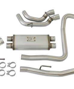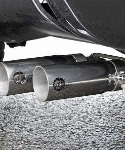 aFe Power introduces an all new Rebel Series dual middle-side exit exhaust system for the 2004-2015 Nissan Titan with V8-5.6L engine. This Rebel Series cat-back is designed with dual black exhaust tips that exit in front of the rear passenger tire for a unique, aggressive look. The tips come with unique laser-etched aFe Power logos on the side and are constructed from stainless steel for durability. The exhaust system is constructed from 2-1/2″ MIG-welded, mandrel bent stainless steel tubing for maximum flow, increased horsepower and torque. This kit uses a free-flowing muffler to absorb high pitch tones producing a powerful sound. The performance cat-back exhaust system includes necessary hardware and clamps for a hassle-free install, with no cutting required making it a true bolt on system. 3-1/2″ Dia. Black Middle-Side Exit Tips: Finishing off the exhaust are dual 3-1/2″ diameter black 304 stainless steel clamp-on tips with a laser-etched aFe power logo on the side for an aggressive style. The tips are designed to exit from in front of the rear passenger side tire for a unique custom look. Installation Is A Snap: This Rebel Series exhaust system uses factory mounting locations providing stability and hassle-free installation. Leak-Free Seal: High quality band clamps are used for a complete 360-degree sealing surface eliminating leak paths. Aggressive Sound: A free-flowing stainless steel muffler is used to absorb high pitch tones producing a powerful sound and unleashing all available horsepower and torque. Perfect Fit: OE-style bayonet hangers are used to maintain a stable pipe location during high vibration and high heat conditions. The bayonet tip holds the hanger bushing in place for an OE-style fit that does not change with time. This makes for an easy installation with no cutting required.