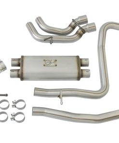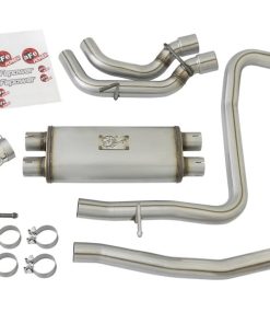 aFe Power introduces an all new Rebel Series dual middle-side exit exhaust system for the 2016-2017 Nissan Titan with V8-5.6L engine. This Rebel Series cat-back is designed with dual black exhaust tips that exit in front of the rear passenger tire for a unique, aggressive look. The tips come with unique laser-etched aFe Power logos on the side and are constructed from stainless steel for durability. The exhaust system is constructed from 2-1/2″ MIG-welded, mandrel bent stainless steel tubing for maximum flow, increased horsepower and torque. This kit uses a free-flowing muffler to absorb high pitch tones producing a powerful sound. The performance cat-back exhaust system includes necessary hardware and clamps for a has sle-free install, with no cutting required making it a true bolt on system.