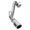 The new MACH Force XP exhaust is engineered to perform in the most extreme environments. This system is constructed from mandrel bent 4 in. 409 stainless steel tubing for maximum flow; increased horsepower; increased torque; and lower EGTs. MACH Force XP exhaust systems are the perfect combination of performance; fit; and value. All systems use factory mounting locations providing stability and hassle-free installation. High quality OE style band clamps are used for a complete 360 deg. sealing surface. A free-flowing 24 in. long muffler is used to absorb high pitch tones producing a powerful sound and unleashing all available horsepower and torque out of you r rig. OE style bayonet hangers are used to maintain a stable pipe location during high vibration and high heat conditions. The bayonet tip holds the hanger bushing in place for an OE style fit that does not change with time.
