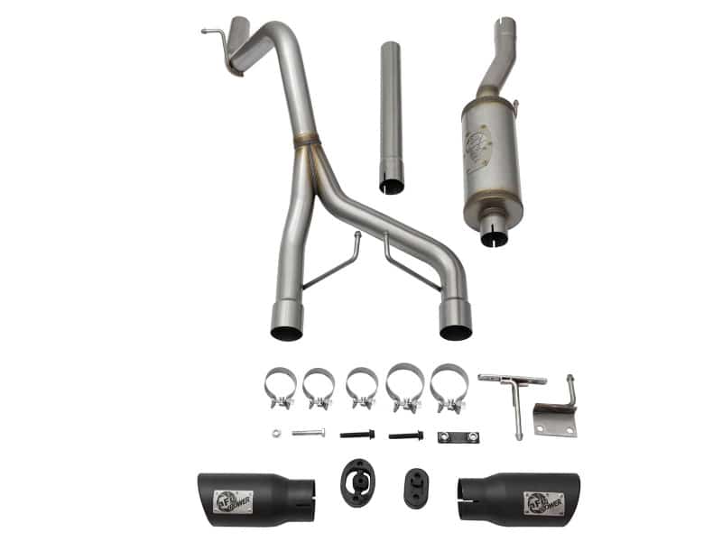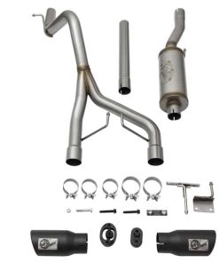 Introducing an all new Rebel Series Dual Center Exit Cat-Back exhaust system for the Jeep Wrangler (JK) with V6-3.6L/3.8L engine. This unique Rebel Series exhaust system is designed with dual center exit tips for an aggressive look. The Tips are 4-1/2″ with aFe power plates and constructed out of stainless steel for durability. This performance cat-back exhaust is constructed of 2-1/2″ MIG-welded mandrel-bent stainless steel tubing. The smooth curves and increased diameter of this exhaust system helps remove restriction and keeps exhaust gas flowing smoothly for increased horsepower, torque and throttle response. In testing, this cat-back exhaust system added an astounding +9 horsepower and +14 lbs. x ft. of torque as verified by our in house dyno. This exhaust system comes complete with a 22″ free-flowing muffler, OE style bayonet hangers, band clamps and all hardware necessary for a hassle-free installation.