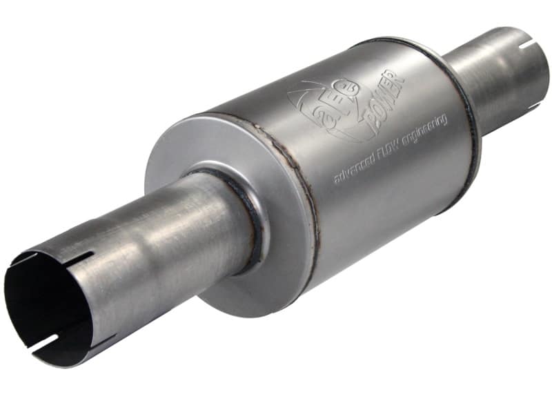 The aFe Universal fit Aluminized Performance Muffler is designed to provide a deep, throaty, powerful sound on acceleration but maintain a smooth sound at idle. This muffler is constructed of brushed finished aluminized steel and uses a straight through perforated core with heat resistant packing to reduce backpressure and maximize exhaust flow. You will see increased performance and improved throttle response over the factory exhaust.