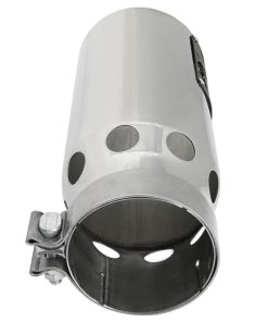 aFe Power is proud to introduce an all new intercooled exhaust tip. This tip comes with a high luster polished finish and is designed to fit 4″ exhaust systems. With a 4″ inlet x 5″ outlet and 12″ inch length, this single-walled, angle cut rolled tip comes with intercooling vents and a unique laser-cut aFe Power logo plate riveted on for an aggressive style.