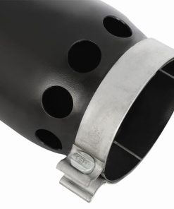 aFe Power is proud to introduce an all new intercooled exhaust tip. This tip comes with a black finish and is designed to fit 5 exhaust systems. With a 5 inlet x 6 outlet and 16 inch length, this single-walled, angle cut rolled tip comes with intercooling vents and a unique laser-cut aFe Power logo plate riveted on for an aggressive style.