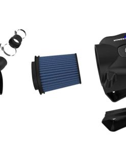 The smooth one-piece sealed housing is used to eliminate the use of multiple-piece housings and ensure the coolest air intake charge available. This System uses a CAD designed, dyno-tuned, roto-mold intake tube to achieve maximum power gains while maintaining a perfect fit. The Momentum ST intake is designed around a pre-oiled, large 9″ Tall conical flat top 360 degree radial flow performance air filter with 5-layers of progressive finer mesh cotton media providing maximum airflow and performance. The unique air filter-to-housing interface (patent pending) allows for maximum filter size which increases the available air volume while simplifying the installation process. Premium stainless steel worm gear clamps and a silicone coupler are used for strength and durability while also provi ding the most secure installation available. Momentum ST intakes are designed with fewer parts for a quick and simple installation.