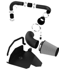 Easy to install one piece 16-gauge powder-coated heat shield requires no cutting or drilling. Stylish powder-coated steel or brushed aluminum cover blocks heat and directs cold air to the filter while quieting intake noise. The precision designed molded plastic intake tube maximizes airflow volume and speed for optimum power gains. 360 degree flow, washable and reusable, limited lifetime filters are high flow and high performance.