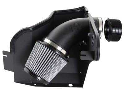 This air intake system produces up to 20 horsepower, 25 lbs. x ft. torque and out-flows the factory intake by up to 80%. Included in this system is a washable/reusable oil free conical air filter that uses three layers of progressive weave synthetic media for maximum convenience. The filter is constructed with 100% polyurethane for a long life and multiple cleaning cycles. This intake system also features a roto-molded tube that replaces the stock intake tract and directs increased air flow with improved volumetric efficiency for maximum performance. This intake system incorporates a unique coupling that smoothens the air transition into the intake tract, and also allows this kit to fit on both US and EURO Mass Air Flow Sensors. A one-piece black powder-coated heat shield requires little to no assembly for a hassle free installation.