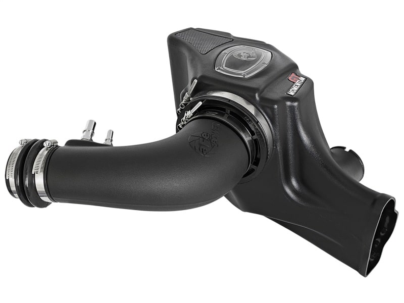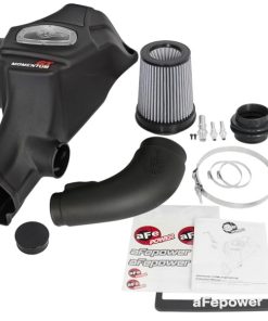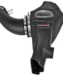 A custom CAD designed roto-molded housing made from heat resistant material eliminates the use of multiple components and ensures the coolest air intake charge available. A large clear sight window allows for filter inspection without removal of the air box. The roto-molded housing is made out of black cross-linked polyethylene. Carbon Fiber Accent is provided for car show quality and to further distinguish your vehicle from others. (US PAT 9440175) For Filter-to-Housing Interface. This system uses a high quality plastic CAD designed, dyno-tuned, roto-molded intake tube to achieve maximum power gains while maintaining a perfect fit. Two CNC machined, high quality billet aluminum fittings are mounted on the tube to provide a perfect connection with the factory vacuum lines. This Momentum GT intake system was designed around the largest filter possible to allow maximum performance and filtration. This Pro DRY S air filter has a large 5″ flange and is 8″ tall with an inverted top. The Pro DRY S performance air filter features 3-layers of progressively finer mesh synthetic “oil-free” media and is constructed with 100% polyurethane frame for long life and multiple clean ing cycles. CNC machined, high quality billet aluminum fittings and a silicone coupler are used for strength and durability while also providing the most secure installation available. Momentum GT intakes are designed with fewer parts for a quick and simple installation.