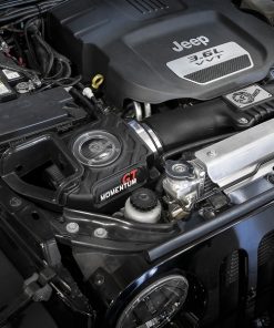 Bringing you the next generation of intakes, aFe is proud to introduce the Momentum GT Sealed intake system for the 2012-2018 Jeep Wrangler (JK) with the V6 3.6L engine. The Momentum GT sealed air intake system is designed using the most up-to-date engineering tools and techniques to provide you with the perfect blend of power and protection. This system is superior in every way. From the one-piece sealed housing, to the massive air filter, rotomolded tube w/ built-in resonance chamber and premium hardware. Unique One-Piece High Quality Housing w/ Sight Window: A custom computer designed roto-molded housing eliminates the use of multiple components and ensures the coolest air intake charge available. A clear sight window allows for filter inspection without removal of the airbox. The roto-molded housing is made out of black cross-linked polyethylene.(US PAT 9440175) For Filter-to-Housing Interface. Roto-molded Tube: This System uses a CAD designed, dyno-tuned, roto-molded intake tube to achieve maximum power gains while maintaining a perfect fit. This tube has a built-in resonance chamber to catch un-wanted air intake noises. Large 3-Layer Performance Air Filter: This Momentum GT intake system was designed around the largest filter possible to allow maximum performance and filtration. This cone inverted top filter has a massive round flange and is 8″ tall inverted top Pro DRY S media. The Pro DRY S performance air filter features 3-layers of progressive finer porosity synthetic media providing maximum convenience. The unique air filter to housing interface (patent pending) allows for maximum filter size which increases the available air volume while simplifying the installation process. Premium Hardware: Premium stainless steel T-bolt clamps are used to securely mount the high flow air filter to the 1-piece airbox. Momentum GT intakes are designed with fewer parts for a quick and simple installation.