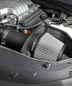 7″ Flange Massive Air Filter: This intake system utilizes a pre-oiled, 6-3/4″ tall inverted top conical 360 degree radial flow performance air filter with 5-layers of progressive finer mesh cotton media providing maximum airflow and performance. Also included is a Magnum SHIELD Pre-filter to protect your performance air filter from debris, repel water and keep your air filter cleaner, longer. High Quality Tube: This system uses a high quality plastic CAD designed, dyno-tuned, roto-molded intake tube to achieve maximum power gains while maintaining a perfect fit. An aluminum sleeve is pressed in the tube end to reinforce the tube structure. One-Piece Heat Shield: Sturdy 18 Gauge Powder-Coated One-Piece Heat Shield blocks performance-robbing engine heat. This heat shield requires no assembly and uses factory mounting locations for fast and easy installation. Custom High Temp. Silicone Coupling: A custom high temperature reinforced silicone elbow coupling is included for easy install with the supercharger breather line. Hassle-Free Installation: All clamps, couplings, and hardware are included for hassle-free installation. This is a direct bolt-on kit that requires no cutting or drilling on OEM parts. This intake works with the Challenger SRT Hellcat headlight inlet and Charger SRT Hellcat inlet behind the front grille.