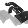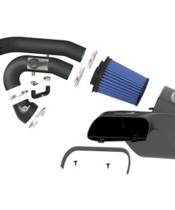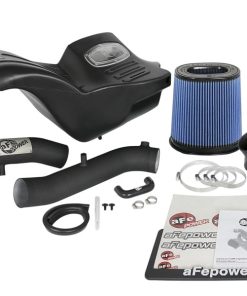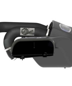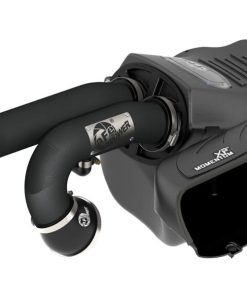This sealed intake system utilizes pre-oiled, large 7″ tall radial flow performance air filter with 5-layers of progressive finer mesh cotton media providing maximum airflow and performance. The smooth one-piece sealed housing is used to eliminate the use of multiple-piece housings and ensure the coolest air intake charge available. A large, clear sight window is used for a hassle-free filter inspection and an aggressive style. Dual 3″ mandrel-bent powder-coated wrinkle-black aluminum equal length intake tubes are designed with an H-pipe to balance intake tube pressure and maximizes airflow and velocity. Also included, an exclusive black riveted aFe Power badge. This is a direct bolt-on kit that requires no cutting or drilling on factory parts.