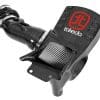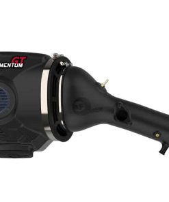 This Momentum GT intake system was designed around the largest filter possible to allow maximum performance and filtration. This cone filter has a large (6-3/4″ x 4-3/4″) oval flange and is 9″ tall with an inverted top. The Pro 5R performance air filter features 5-layers of progressively finer mesh cotton gauze oiled media and is constructed with 100% polyurethane frame for long life and multiple cleaning cycles. A custom CAD designed roto-molded housing made from heat soak resistant material eliminates the use of multiple components and ensures the coolest air intake charge available. A large clear sight window allows for filter inspection without removal of the air box. The roto-molded housing is made out of black cross-linked polyethylene. A urethane plug is also included if you wish to block off the auxiliary air inlet. This system uses a high quality plastic CAD designed, dyno-tuned, roto-molded intake tube to achieve maximum power gains while maintaining a perfect fit.