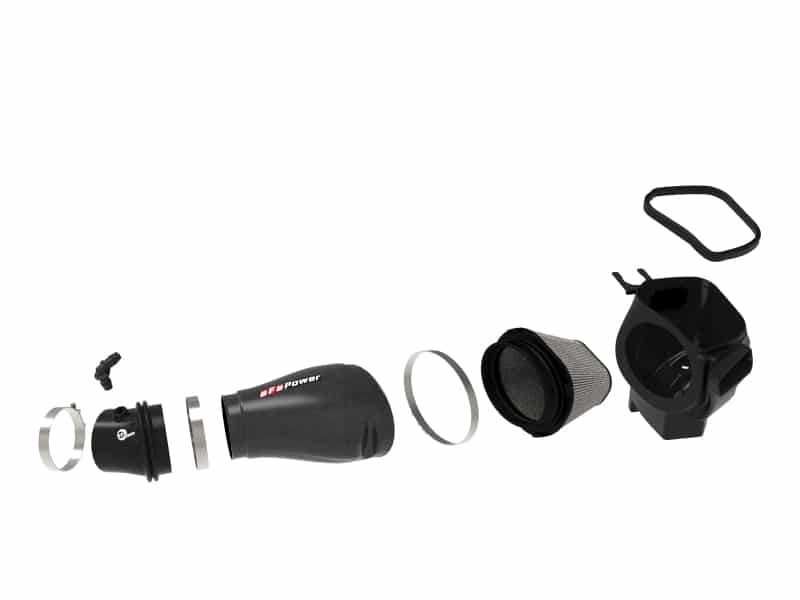 Large Three Layer Performance Air Filter: This 7” tall 360-degree radial flow air filter features a 5-1/2″ by 7-1/2″ flange and our oil-free Pro DRY S media with three layers of synthetic media for maximum convenience. Its progressive layering provides great filtration efficiency and dust holding capacity, while not requiring the use of oils. This media is best suited for street and light off-road use. Unique One-Piece Housing: The included massive air filter is surrounded by an open-element XLPE (cross-linked polyethylene) polymer housing that minimizes warm engine air for maximum performance. Its open design allows for easy viewing of the air filter, yet creates a heat-blocking seal when the vehicle’s hood is closed. Multiple air inlets bring in cool air when under power without capturing any warm air surrounding the engine. FCA Multi-Air Unit Actuator: The factory MUA (Multi-Air Unit Actuator) is easily transferred to the aFe POWER housing to guarantee correct crankcase flow, avoiding check engine lights and damaging factory hoses and sensors. All hoses, clamps, and screws are provided to connect to the aFe POWER tube and secure the MUA to the aFe POWER housing. Dyno-Tuned Intake Tube: The lightweight tube is computer-designed to achieve maximum power gains while maintaining a perfect fit. Manufactured from 100% twill weave carbon fiber, it features zero fiberglass and is clear-coated for the highest quality construction. Hassle-Free Installation: This is a direct fit intake system that utilizes factory mounting points. All necessary stainless-steel clamps, silicone coupling, and hardware are included. Its revolutionary design, featuring our patent pending filter-to-housing interface, uses half the number of parts of a traditional cold air intake system. Emissions Disclaimer: This product is not currently CARB exempt and is not available for purchase in California or for use on any vehicle registered with the California Department of Motor Vehicles.