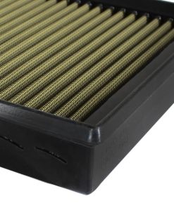 Pro GUARD7 Media: This filter features 5-layers of progressively Finer Oiled Cotton Gauze and 2-layers of Finer Porosity Synthetic non-woven media for highest filtration efficiency for extreme dust environments. (US PAT 06811588) Rounded Open Pleats: aFe performance air filters use a rounded, evenly spaced pleat design which produces more usable filter surface area for increased flow and greater dust holding capacity. Progressive Bump Seal: This pliable sealing surface conforms to even the most uneven filter housing. This design eliminates the use of gaskets or sealants. The soft urethane construction always goes back to its original form so you will never compress the bump seal. This makes for a perfect filter fit and sealing surface every time. Full Urethane Housing: aFe Power performance air filters are constructed using full 360 degree urethane frames. This construction allows for a proper factory style fit with excellent filter strength.