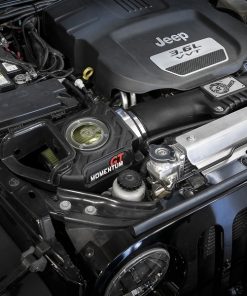 Bringing you the next generation of intakes, aFe is proud to introduce the Momentum GT Sealed intake system for the 2012-2018 Jeep Wrangler (JK) with the V6 3.6L engine. The Momentum GT sealed air intake system is designed using the most up-to-date engineering tools and techniques to provide you with the perfect blend of power and protection. This system is superior in every way. From the one-piece sealed housing, to the massive air filter, rotomolded tube w/ built-in resonance chamber and premium hardware. Unique One-Piece High Quality Housing w/ Sight Window: A custom computer designed roto-molded housing eliminates the use of multiple components and ensures the coolest air intake charge available. A clear sight window allows for filter inspection without removal of the airbox. The roto-molded housing is made out of black cross-linked polyethylene. (US PAT 9440175) For Filter-to-Housing Interface. Roto-molded Tube: This System uses a CAD designed, dyno-tuned, roto-molded intake tube to achieve maximum power gains while maintaining a perfect fit. This tube has a built-in resonance chamber to catch un-wanted air intake noises. Large 7-Layer Performance Air Filter: This Momentum GT intake system was designed around the largest filter possible to allow maximum performance and filtration. This cone inverted top filter has a massive round flange and is 9″ tall inverted top Pro GUARD7media. The Pro GUARD7performance air filter features 5-layers of progressive cotton media with 2-layers of progressive synthetic media providing 99.7% cumulative efficiency for maximum filtration. (US PAT 06811588) The unique air filter to housing interface (patent pending) allows for maximum filter size which increases the available air volume while simplifying the installation process. Premium Hardware: stainless steel T-bolt clamps are used to securely mount the high flow air filter to the 1-piece airbox. Momentu m GT intakes are designed with fewer parts for a simple installation.
