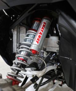 These 2.5″ diameter coilovers feature race-winning engineering components that have 20+ years of testing, made into a specifically designed kit that will bolt directly onto your side-by-side. This kit offers adjustable ride height and Sway-A-Way’s new Mid-Speed Compression Adjusters for superior off-road damping curves without sacrificing any off-road comfort or handling. These coilovers are 100% designed and built in the USA and feature bright zinc plated steel cylinder bodies and CNC machined aluminum components. The kit comes pre-set for original ride height and damping while also including a spanner wrench to change spring pre-load and spring crossover stop nuts to allow for fine tuning. Whether you are riding dunes, racing, or blasting across the desert, these coilovers allow you to find your ideal setup for the given conditions. This package is designed as a direct fit application and requires no modifications to the vehicle. Sway-A-Way’s new 2.5 Series Mid-Speed Compression Adjusters mount directly into the piggyback attachment. Offering 16 clicks of resolution, the compression adjuster can go from the unrestricted, fully open (soft) position, to the fully closed (hard) position – offering up to a 200% increase in damping force, in just two full turns of the GF polymer adjuster knob. Rebound damping will remain unaffected regardless of the setting and valving combination chosen. Constructed from billet 6061-T6 aluminum, the red anodized and laser etched housing is built to withstand the harshest of environments with excellent corrosion resistance. The metering piston is CNC machined from 7075-T6 aluminum to provide the best service life for high speed applications. Sway-A-Way’s mid-speed compression adjusters are an excellent solution for any application that varies weight often, or that might be used in a variety of terrains where a quick adjustment is desired for optimizing the comfort level of your ride.