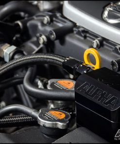 The Alpha Performance GT-R Air/Oil Separator is designed to remove oil vapor from your VR38’s crankcase before it ends up in your intake tubes and combustion chamber.