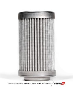 The AMS Performance Q50/Q60 Red Alpha Fuel Filter Kit has been designed to be the highest quality and most sophisticated solution for fuel filtering of the VR30 engine on the market. As many have experienced, OEM fuel system component failures are fairly common on the VR30 engine, especially when using higher concentrations of ethanol like E50 or E85. Ethanol is an excellent high octane fuel source with its high alcohol content, and because of this it also acts as a cleaning agent. For some cars, this can dislodge sediment in the fuel tank and lines built up over years of running low grade gasoline. One of the best ways to prevent this dislodged foreign object debris from making its way into the injectors or engine itself is by utilizing a high quality in-line fuel filter.