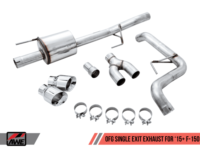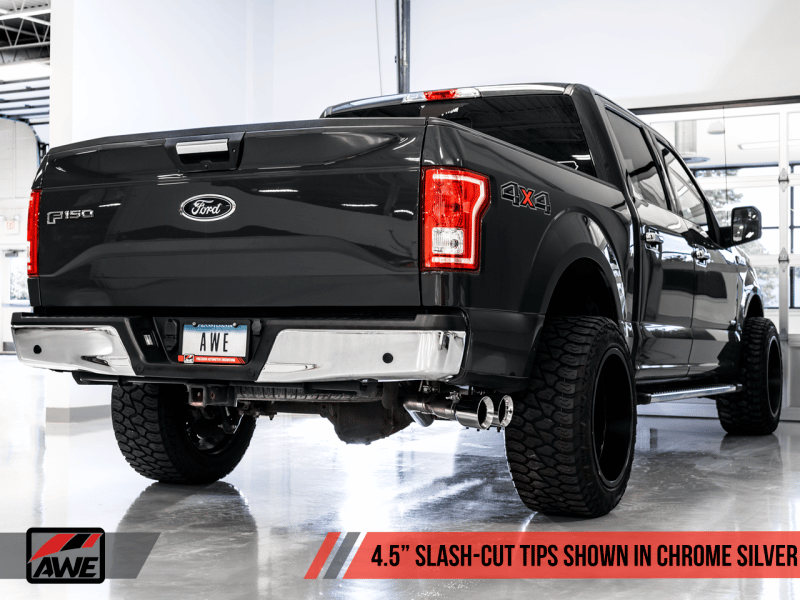 AWE Tuning 2015+ Ford F-150 0FG Single Exit Performance Exhaust System w/4.5in Chrome Silver Tips