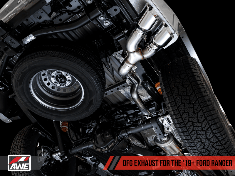 AWE Tuning 2019+ Ford Ranger 0FG Performance Exhaust System w/Chrome Silver Tips & Bash Guard