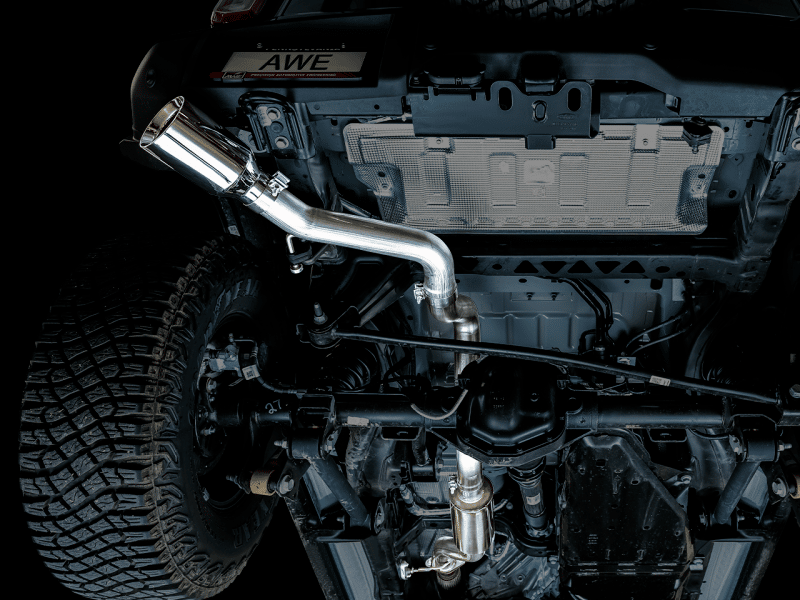 AWE Tuning 2021+ Ford Bronco 0FG Single Rear Exit Exhaust w/Chrome Silver Tip & Bash Guard