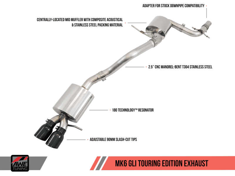 AWE Tuning Mk6 GLI 2.0T – Mk6 Jetta 1.8T Touring Edition Exhaust – Diamond Black Tips