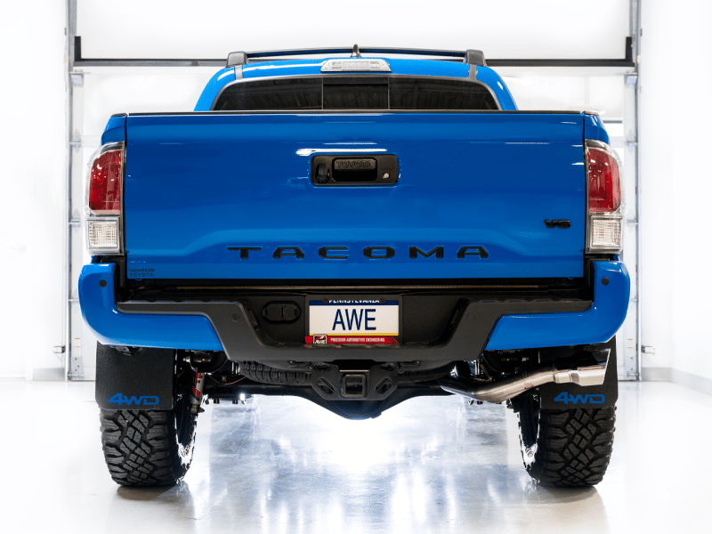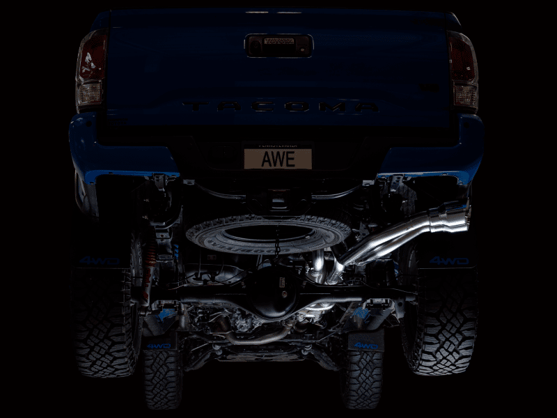 AWE 16-22 Toyota Tacoma 0FG Catback Exhaust w/ BashGuard – Dual Chrome Silver Tips