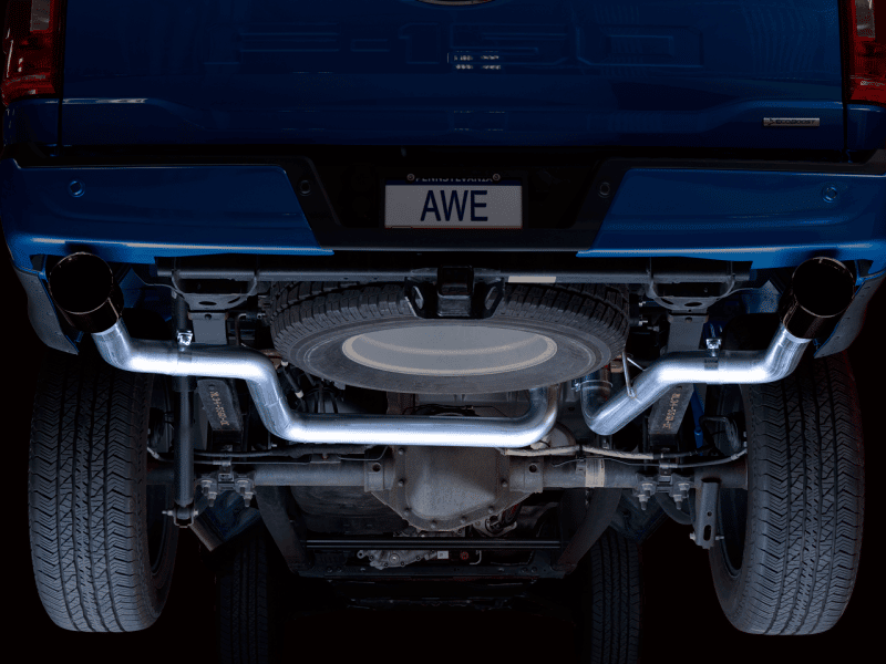 AWE 0FG 21+ Ford F150 Dual Split Rear Cat-Back Exhaust- 5in Diamond Black Tips